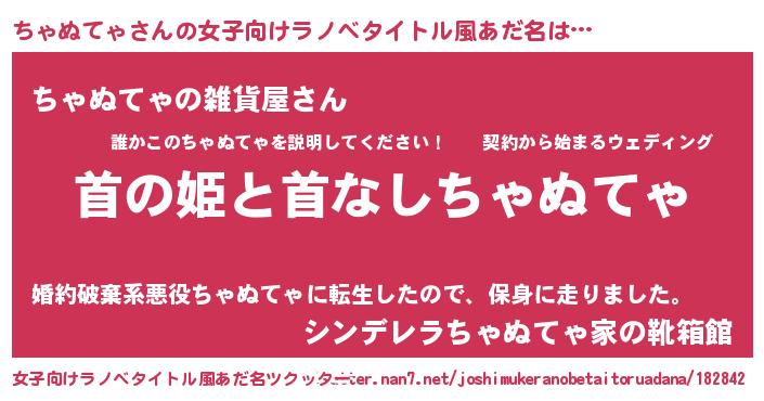 | 男性向けラノベタイトル風あだ名 | 『はたらくちゃぬてゃさま!』 |