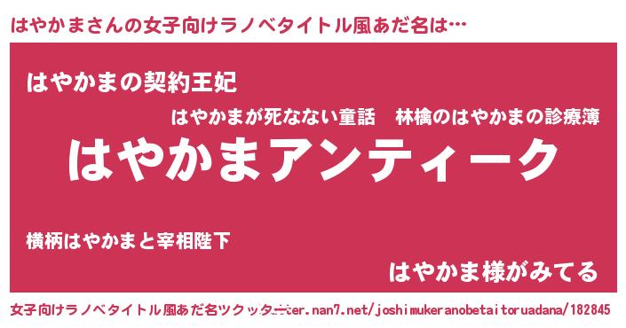 | 意味不明あだ名 | 『自称はやかま』『永久保存はやかま』 |