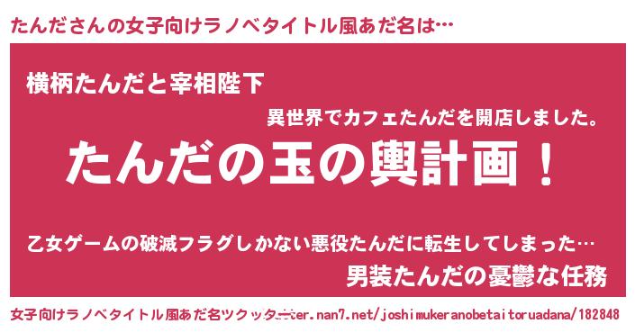 | ヘコむあだ名 | 『たんだ(小並感)』『レバニラ』 |