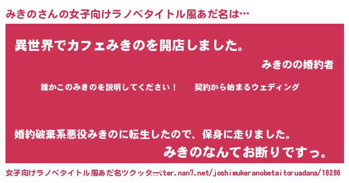 | 胡散臭い通販商品みたいなあだ名 | 『億万長者になれる霊験あらたかなお札…その名も「みきの」』 |