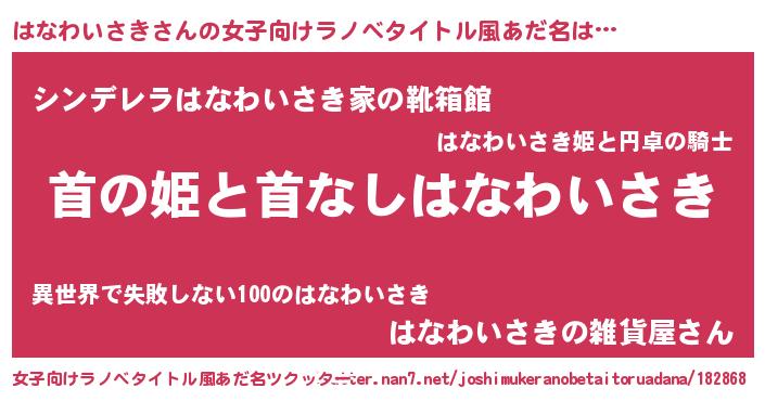 | 男性向けラノベタイトル風あだ名 | 『はたらくはなわいさきさま!』 |