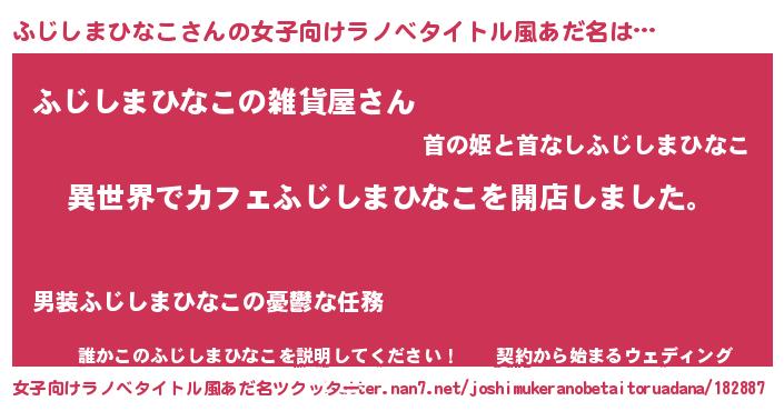| 胡散臭い通販商品みたいなあだ名 | 『前代未聞の健康食品…その名も「ふじしまひなこ」』 |