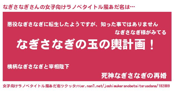 | 伝説のあだ名 | 『救世主となる占い師なぎさなぎ』 |
