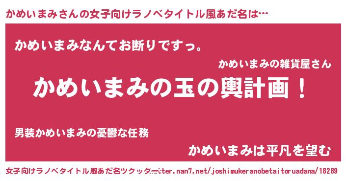 | ヒーロー風カッコイイあだ名 | 『究極戦士カメイマミ』『暗黒騎士カメ』 |