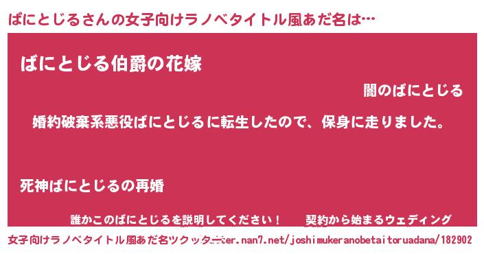 | 男性向けラノベタイトル風あだ名 | 『転生したらばにとじるだった件』 |