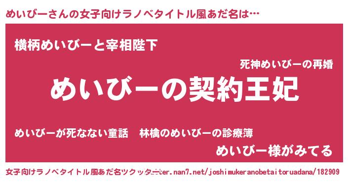 | 意味不明あだ名 | 『永久保存めいびー』 |