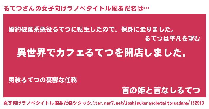 | 男性向けラノベタイトル風あだ名 | 『誰もが恐れるあのるてつが、ぼくの専属メイドになるようです。』 |