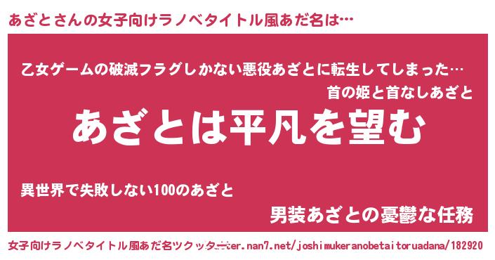 | 胡散臭い通販商品みたいなあだ名 | 『信頼と実績のサプリメント…その名も「あざと」』 |