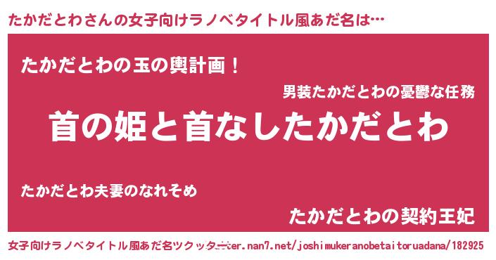| 男性向けラノベタイトル風あだ名 | 『はたらくたかだとわさま!』 |