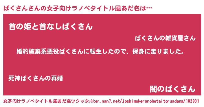 | 男性向けラノベタイトル風あだ名 | 『バクサンスレイヤー』 |