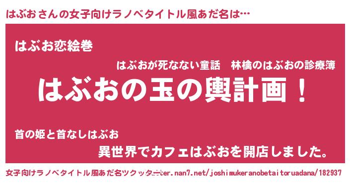 | 意味不明あだ名 | 『ヨモギ科はぶお属』『永久保存はぶお』 |