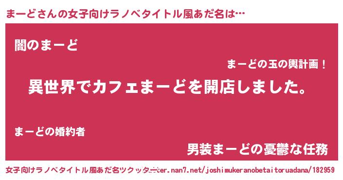 | 意味不明あだ名 | 『永久保存まーど』『自称まーど』 |