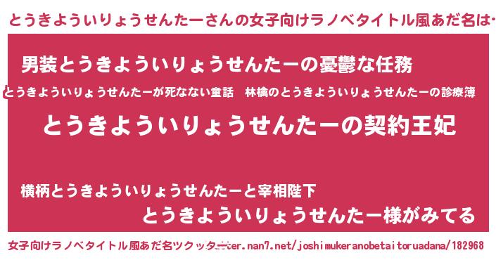 | 意味不明あだ名 | 『永久保存とうきよういりょうせんたー』 |