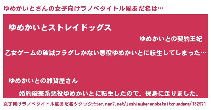 | 男性向けラノベタイトル風あだ名 | 『この素晴らしい世界にゆめかいとを!』 |