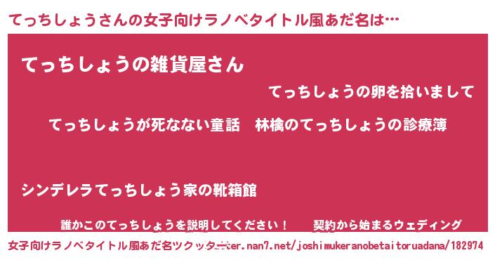 | 男性向けラノベタイトル風あだ名 | 『魔弾の王とてっちしょう』 |