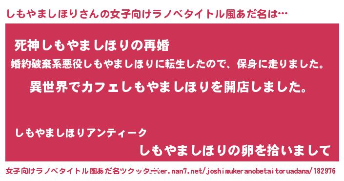 | 意味不明あだ名 | 『永久保存しもやましほり』 |