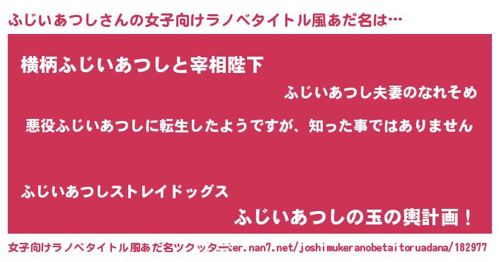 | 男性向けラノベタイトル風あだ名 | 『この素晴らしい世界にふじいあつしを!』 |