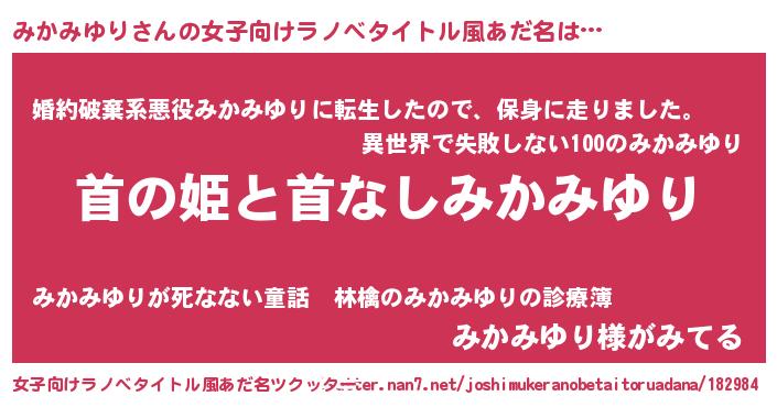 | 胡散臭い通販商品みたいなあだ名 | 『信頼と実績のペンダント…その名も「みかみゆり」』 |