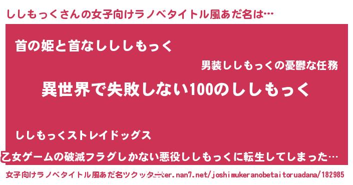 | 意味不明あだ名 | 『永久保存ししもっく』『自称ししもっく』 |