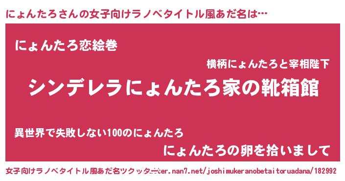 | ヒーロー風カッコイイあだ名 | 『正義の使者にょんたろ』『魔戒騎士ニョ』 |