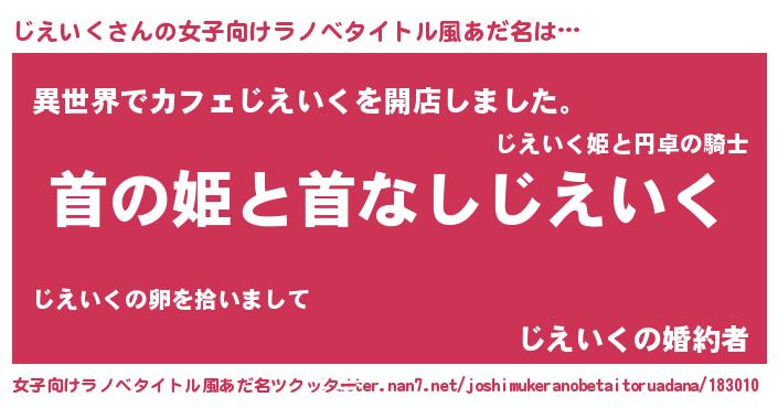 | 胡散臭い通販商品みたいなあだ名 | 『絶対に幸福をもたらす水素水…その名も「じえいく」』 |