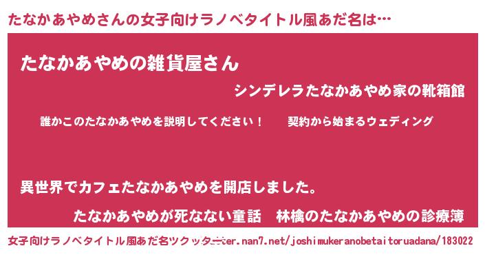 | 男性向けラノベタイトル風あだ名 | 『タナカアヤメアートオンライン』 |