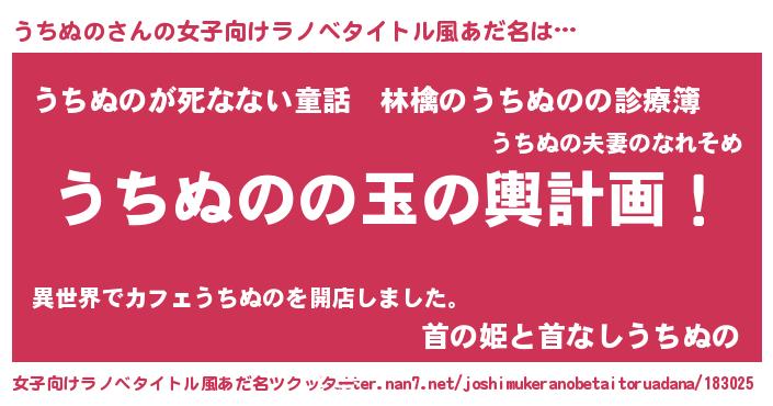 | 胡散臭い通販商品みたいなあだ名 | 『あなたにだけ特別に提供する100年もののヴィンテージワイン…その名も「うちぬの」』 |