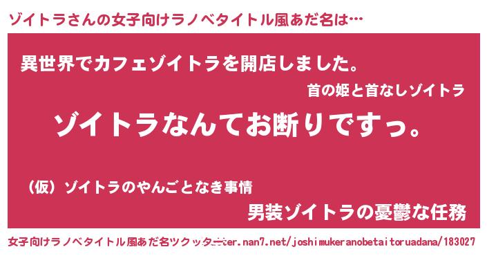| ヘコむあだ名 | 『ゾイトラ(笑)』『ゾイにゅー』 |