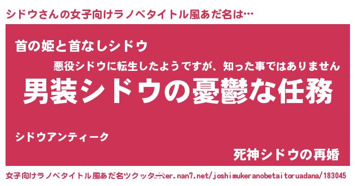 | 男性向けラノベタイトル風あだ名 | 『冴えないシドウの育てかた』 |