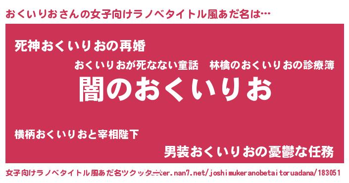 | 男性向けラノベタイトル風あだ名 | 『Re:おくいりおから始める異世界生活』 |