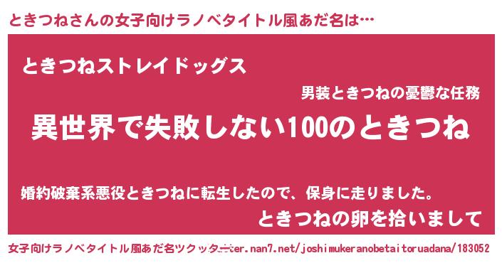 | 胡散臭い通販商品みたいなあだ名 | 『絶対に幸福をもたらす水素水…その名も「ときつね」』 |