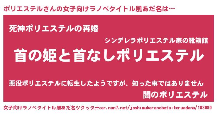 | ヒーロー風カッコイイあだ名 | 『正義の使者ポリエステル』 |