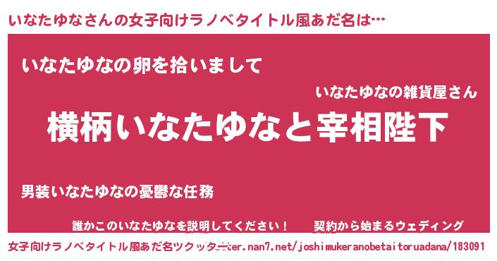 | 男性向けラノベタイトル風あだ名 | 『いなたゆなに滅ぼされるだけの簡単なお仕事です』 |