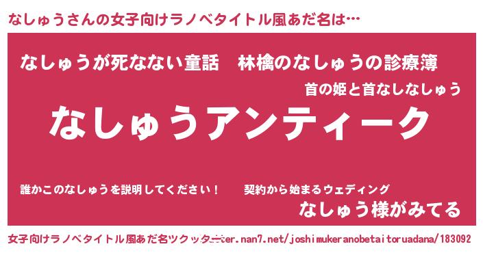 | 意味不明あだ名 | 『自称なしゅう』『ペロリンなしゅう』 |