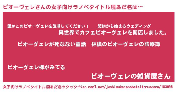 | 男性向けラノベタイトル風あだ名 | 『魔弾の王とピオーヴェレ』 |