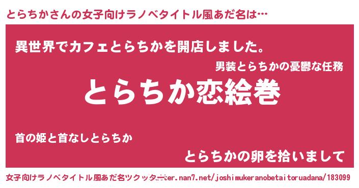 | ヒーロー風カッコイイあだ名 | 『愛の使者とらちか』『ネオトラチカ』 |