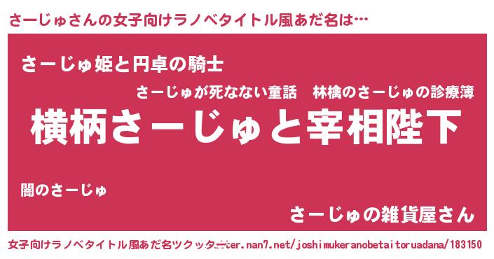 | 男性向けラノベタイトル風あだ名 | 『さーじゅに滅ぼされるだけの簡単なお仕事です』 |