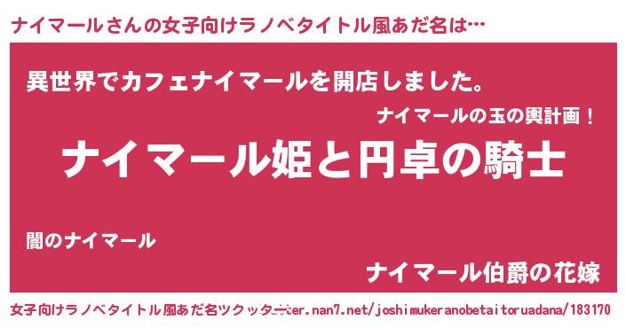 | 男性向けラノベタイトル風あだ名 | 『ナイマールの憂鬱』 |