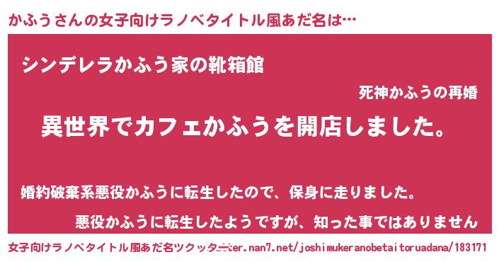 | 胡散臭い通販商品みたいなあだ名 | 『前代未聞の健康食品…その名も「かふう」』 |