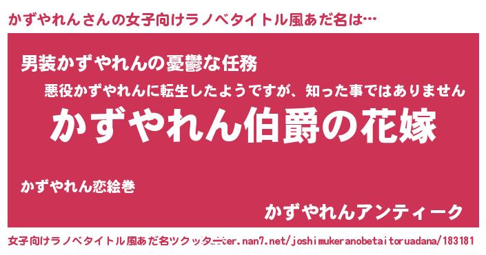 | 男性向けラノベタイトル風あだ名 | 『やはりかずやれんの青春ラブコメはまちがっている 』 |