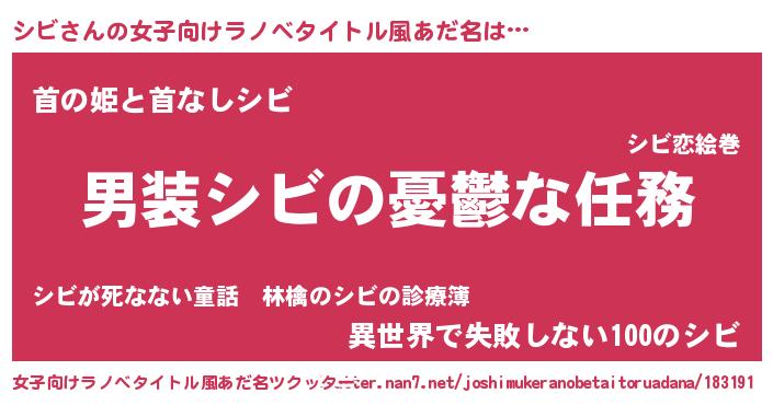 | 男性向けラノベタイトル風あだ名 | 『うちのシビが世界を掌握している!』 |