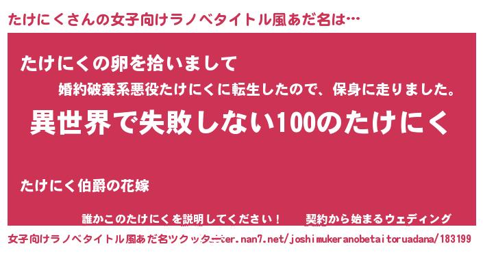 | 胡散臭い通販商品みたいなあだ名 | 『絶対に幸福をもたらす健康食品…その名も「たけにく」』 |