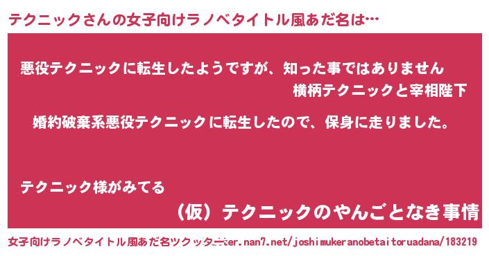 | 胡散臭い通販商品みたいなあだ名 | 『世界中を虜にした100年もののヴィンテージワイン…その名も「テクニック」』 |