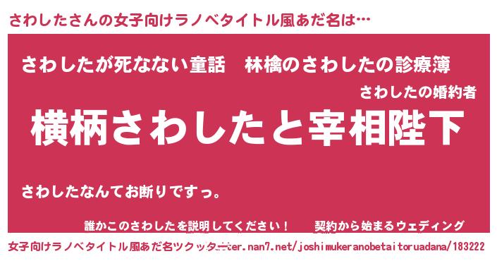 | 男性向けラノベタイトル風あだ名 | 『さわしたに滅ぼされるだけの簡単なお仕事です』 |