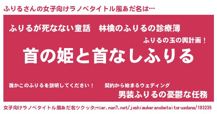 | 男性向けラノベタイトル風あだ名 | 『はたらくふりるさま!』 |
