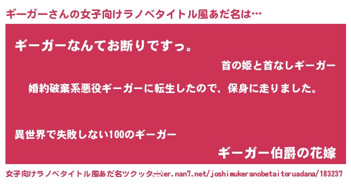 | 男性向けラノベタイトル風あだ名 | 『転生したらギーガーだった件』 |