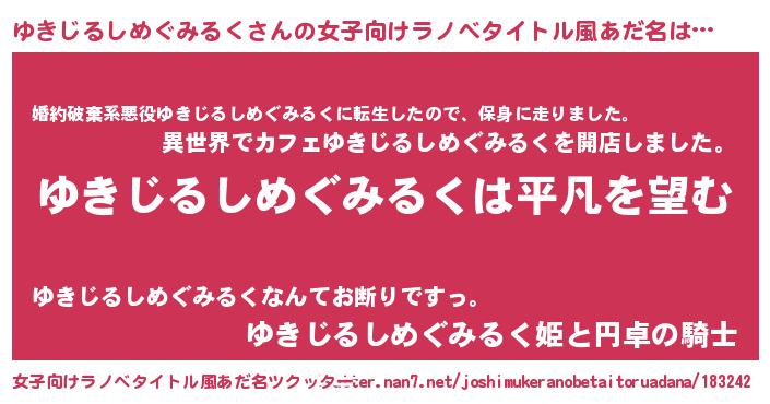 ゆきじるしめぐみるくさんの女子向けラノベタイトル風あだ名