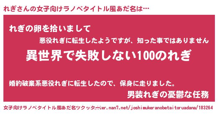| 胡散臭い通販商品みたいなあだ名 | 『絶対に幸福をもたらす水素水…その名も「れぎ」』 |