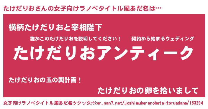 | 男性向けラノベタイトル風あだ名 | 『魔法科高校のたけだりお』 |