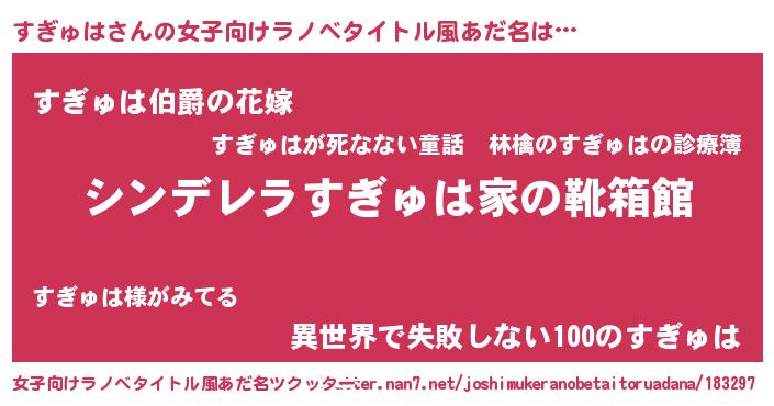 | 胡散臭い通販商品みたいなあだ名 | 『世界が平和になる高級そうな壺…その名も「すぎゅは」』 |